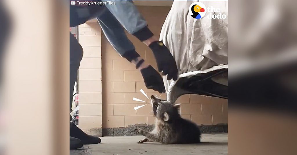 Cuando un mapache entró en un garaje buscando un lugar cálido y algo de comida, no sabía el peligro que corría. Escuchó los pasos de una persona y rápidamente trató de esconderse, lanzándose bajo la lona de un coche.